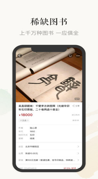 1、大量极具收藏价值的古旧珍本在线交易。2、书籍种类齐全,出售价格低廉,可谓是物美价廉。