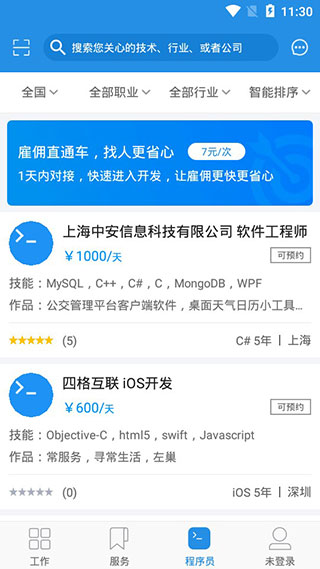 【按时雇佣BAT级程序员】按需求短期雇佣人才,获得超额回报。企业方与人才直接沟通,使用[雇佣直通车]帮您自动预约合适开发者,为您平均节省一周的预约和沟通等待时间!