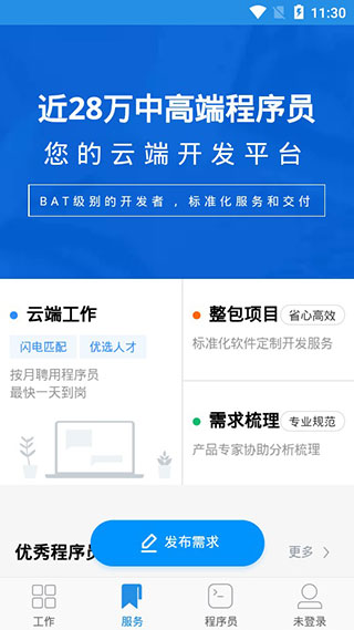 2、项目方可通过我们找到全国各地 web前端、Ios、 Android、Java、全栈、Python、Ruby、php、.Net、C#、C++等后端开发、UI、UE、运维测试、原型设计、PM等方向的互联网技术BAT级人才。所有签约开发者均经过严格身份、经验与作品认证。