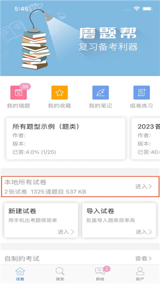 1. 在首页点击本地所有试卷。