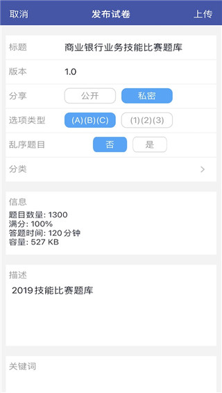5. 你可以为试卷输入一些关键字,使用空格隔开各个关键字。