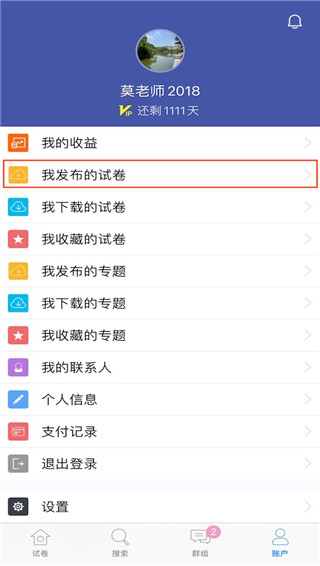 7. 你可以通过点击账户页面中的“我发布的试卷”找到所有你已发布的试卷。