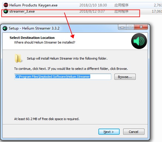 1、本站下载压缩包,解压后双击streamer_3.exe运行,选择安装目录,点next