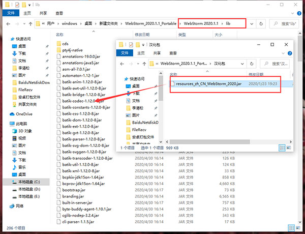 2、将resources_cn.jar文件复制.Webstormlib目录。