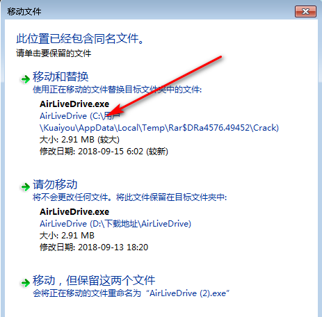 7、将破解补丁复制到软件根目录下,选择替换操作默认路径为:C:Program FilesAirLiveDrive