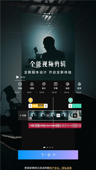 1、【视频制作】一键美颜拍摄、特色主题、胶片滤镜、大片特效、文艺字体、缤纷字幕、趣味贴纸、海量音乐……一键拍摄,方寸间成为微电影达人。2、【视频拼接】轻松合并多个视频片段,帮助你快速地制作短视频并分享给家人朋友。