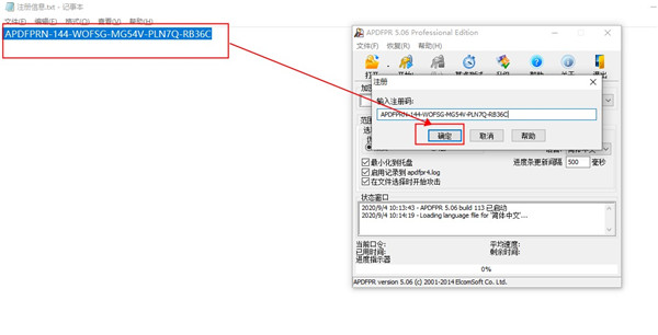 4、打开安装目录里的“注册信息”文本,把里面的注册码复制进去,点击“OK”;