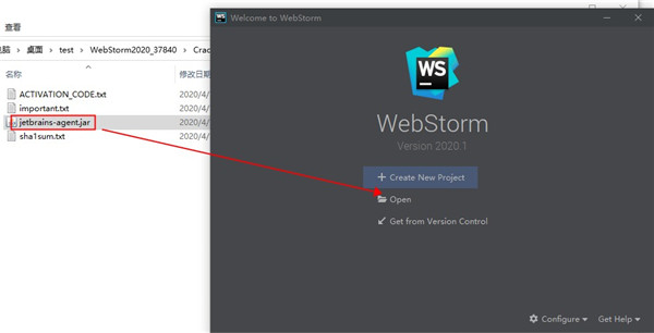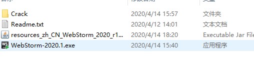 1、下载JetBrains WebStorm 2020中文破解版解压文件压缩包,得到如图文件:破解补丁和主体安装程序;