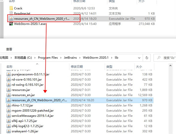 1、将resources_zh_CN_WebStorm_2020_r1.jar汉化包复制到软件安装路径lib文件下即可汉化软件