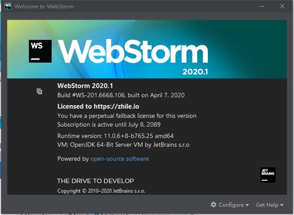 12、至此,WebStorm2020.1破解版成功激活注册,用户可以放心使用了