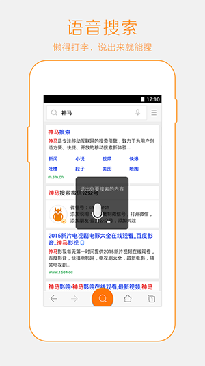 【语音搜索】强大语音识别,搜索动口不动手【购物搜索】购物之前用“神马搜索”搜一下,商品信息、淘宝商品价格全都能找到