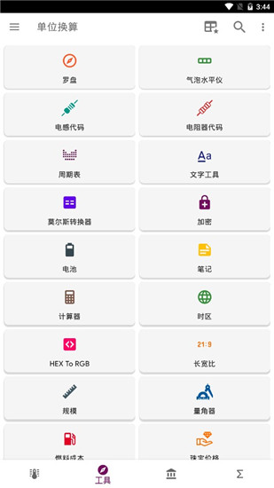 1科学工具 - 气泡水平仪,指南针,量角器,电阻器代码,秒表,直尺,世界时间,日期转换器等。2多个特征 - 电池监视器,笔记,表达评价,方程解算器,感应颜色代码,科学计算器。