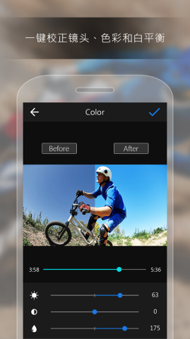 2、极速剪辑,一键修补 – 内建强大调整工具,一次解决从裁剪、调整亮度、白平衡到对比度修正等问题。