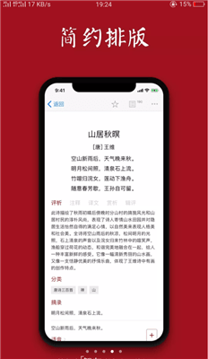 1、内容丰富:海量诗词作品,支持全文检索、简繁切换
