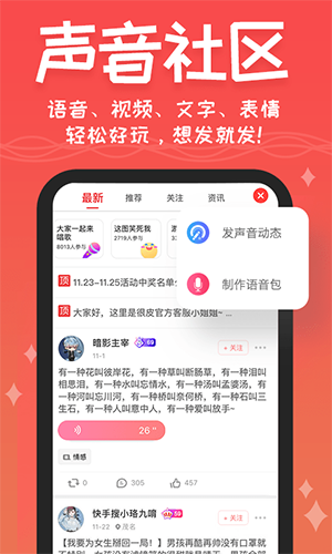 能够通过语音进行发布动态信息,让动态更新颖;