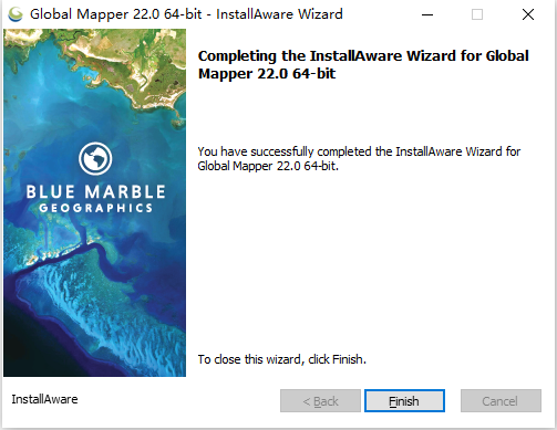6、Global Mapper 22破解版安装成功,点击Finish退出安装向导