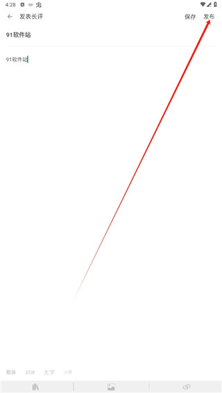 3、最后输入你要发布的内容,点击右上角的发布即可