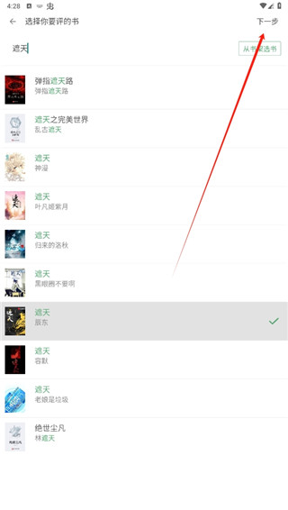 2、随后你可以通过书籍名称、书籍作者来查找你要写书评的小说