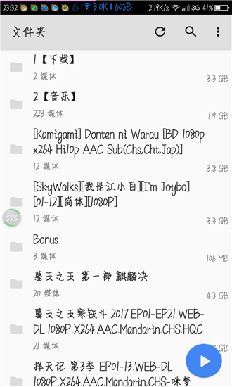 1、打开应用,就会自动扫描本地可以播放的视频文件2、MX Player最新版直接预览各个文件夹扫描出来的文件