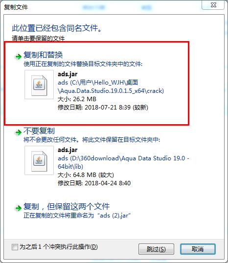 9、打开软件包,将crack目录下的破解补丁复制到软件安装目录下,默认为C:Program FilesAqua Data Studio 19.0 - 64bitlib,可以选中软件图标右键选择打开文件位置,进入安装目录。