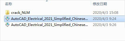 1、下载解压,得到AutoCAD Electrical 2021中文版原程序和Crk破解文件夹,首先运行"AutoCAD_Electrical_2021_Simplified_Chinese_Win_64bit_dlm_001_002.sfx.exe"开始安装;