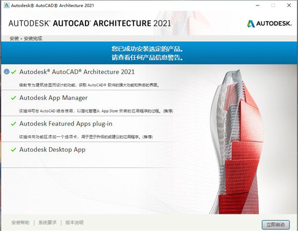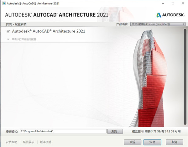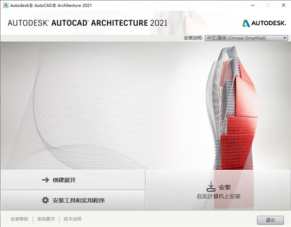 1、打开AutoCAD Architecture 2021官方版,双击运行AutoCAD_Architecture_2021_Chinese_Simplified_Win_64bit_dlm_001_002.sfx.exe,并依据提示进行安装