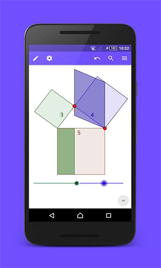 同时GeoGebra官方安卓版使用简单、交互性强,可免费用于学习、教学和考评,不但可以模拟知识的发生过程,还可以设计成一种实验课,让学生自己探索出公式、定理,尝试一下当发明家、数学家的滋味。另外它以趣味的方式真正观察和体验数学和科学,可适于各种课程或项目,能让学生在枯燥的数学课堂上眼前一亮,这样很容易引起学生的兴趣,以此充分调动学生的积极性,使学生在轻松、愉快的氛围中获得知识。