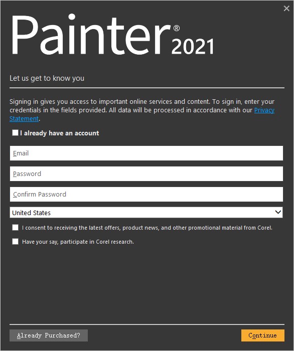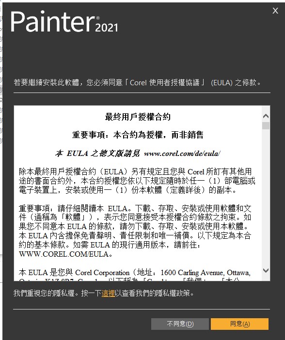 1、下载Corel Painter 2021中文版安装包并解压缩,断开网络连接,运行软件开始安装,选择语言中文