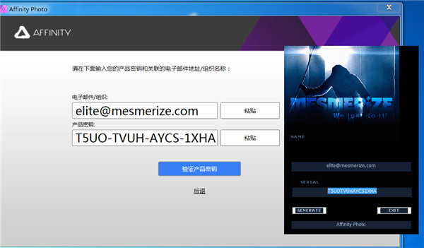 3、安装完成后运行程序会提示注册激活,运行Crack文件夹里的keygen注册机文件,点击generate获得邮箱和激活码