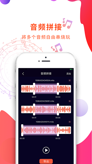 - 合并音频音乐:轻松一键实现多首音乐歌曲合并,串烧音乐剪辑合成随时high起来