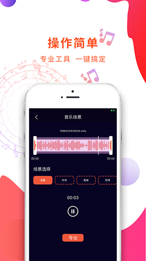 - 音频剪辑官方手机版:从本地音乐库导入音乐音频,轻松拖动选择音频裁剪范围,也可以手动输入准确时间点,从此你就是音剪大师- 混合音频:将不同的音乐混淆合成,背景音乐和主旋律可调节音量大小,大师专业级别的音频混合剪辑制作完成