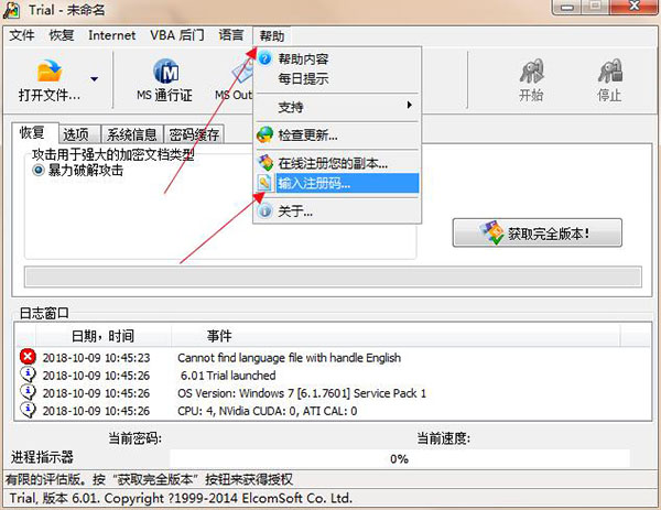 2、掩码式暴力破解。如果你知道密码中的若干字符,建议选中“掩码式暴力破解”。使用掩码式暴力破解比使用纯粹的暴力破解更节约时间。使用这种破解方法时,要打开“暴力”选项卡,在“掩码/掩码字符:”框中输入密码包含的字符;另外,为了尽量减少尝试的组合数,仍然要设置密码的长度和密码中其它字符所在的字符集。