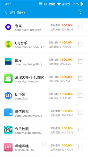 10.应用缓存清理,统计应用缓存,清理应用缓存,还有应用缓存大小排序,应用膨胀率分析( )‥