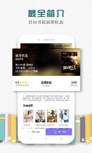 【超大书架】多种本地图书导入方式,书架含图书排序、分类等多种贴心功能。【海量书库】30 万册图书书城,包括了各种精品出版物与网络原创小说。
