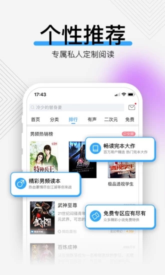 2. 各类榜单,分类精细;男频女频,为您推荐!