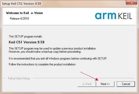 1、下载数据包并解压,双击“keil_c51v959(180509版).exe”开始安装,安装提示点击next