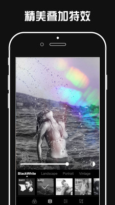 3、滤镜君各种美丽的叠加特效 它提供独特的叠加特效来营造氛围。你可以添加各种叠加特效,如星辰,落雨,雪花,闪闪特效,漏光,电影胶片,树影,光晕等。