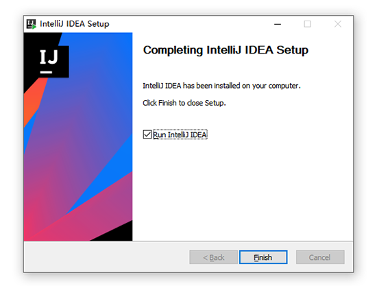 5、 安装完成后,勾选 Run IntelliJ IDEA,点击 finish 运行软件: