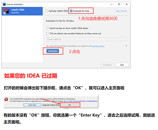6、 会先弹出一个注册框,勾选 Evaluate for free, 点击 Evaluate: