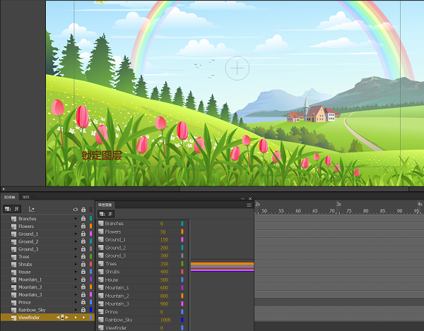 2.如果您不希望将摄像头应用于某些图层,可以通过将这些图层附加到摄像头以将其锁定。例如,当您为平视显示器创建动画时,可以使用此功能
