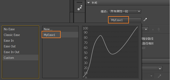 在此版本中,Animate可提供一个选项,用于在传统和形状补间的属性级别保存您的自定义缓动预设。您可以重用您的Animate项目中的自定义缓动预设