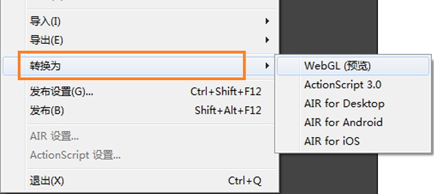 在此版本中,可以通过使用“文件”>“转换为”菜单,将 Animate 项目从一个文档类型转换为其他文档类型。如果您有大量要转换为其他格式或文档类型的文件,可利用 JSAPI