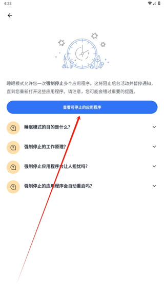 3、随后点击你需要设置睡眠的应用程序,点击强制停止