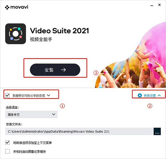 3、勾选许可协议,点击安装设置选择安装路径之后就可以点击安装