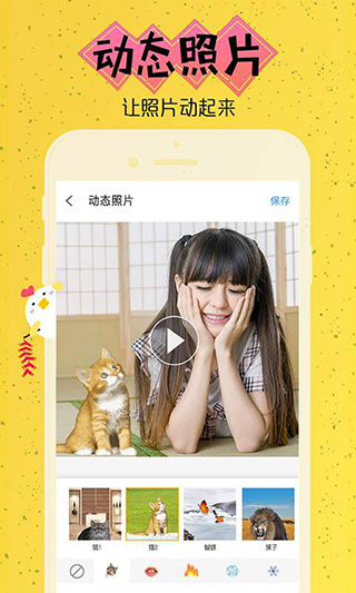 一、智能特效功能,超炫贴纸超酷特效齐上阵!1、萌拍贴纸: 各种有趣动态贴纸,敲萌敲可爱。智能识别人脸,帮你一键识别脸部表情,长按拍照键还可以录制短视频,更有《延禧攻略》、《毒液》等影视剧专属定制贴纸等你来玩,并可一键分享微信、微博,与全球用户一起嗨!