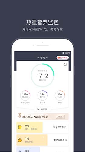 1-识别食物热量:结合计食器智能餐具,拍照上传即可识别食物热量,帮您快速记录热量,控制摄入2-管理摄入:根据您的信息计算出每日的热量预算以及碳水、蛋白质和脂肪的合理比例,您也可以自定义比例
