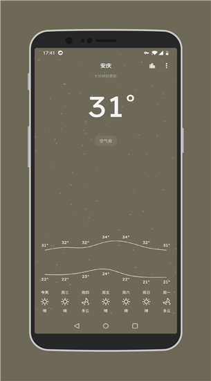 【温度显示】Pure天气显示当天的温度、从而选择穿什么衣服!