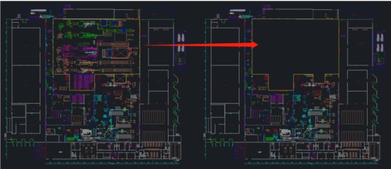 用户可使用反向裁剪功能,隐藏定义边界内的外部参照内容,保留边界外的内容。这个功能跟此前的外参裁剪功能——保留定义边界内外部参照内容,有所不同。这个功能让用户能够更灵活地对外部参照对象进行裁剪。