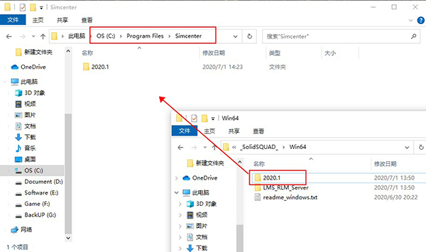 8、将破解补丁中的2020.1文件夹复制到软件根目录下覆盖;