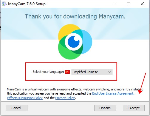 2、选择软件安装的语言,在点击“I Accept”进入下一步;